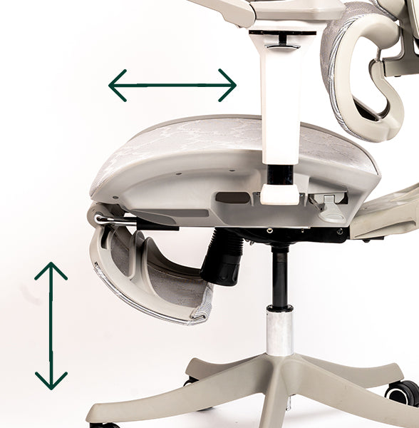 4D mesh headrest, adjustable lumbar support, back height adjustment, and