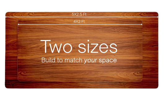 two top sizes: 5x2.5 feet for creators and multitaskers who need more space, and 4x2 feet for compact home office or work-from-home setups. Both offer the same premium features and integrated cable management.